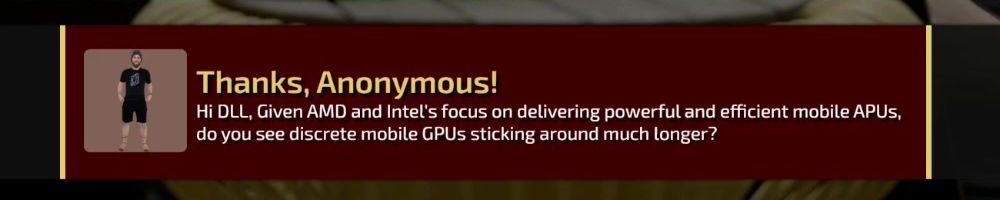 Hi DLL, Given AMD and Intel's focus on delivering powerful and efficient mobile APUs, do you see discrete mobile GPUs sticking around much longer?