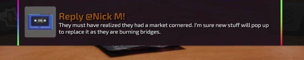 Reply @Nick M! They must have realized they had a market cornered. I'm sure new stuff will pop up to replace it as they are burning bridges.