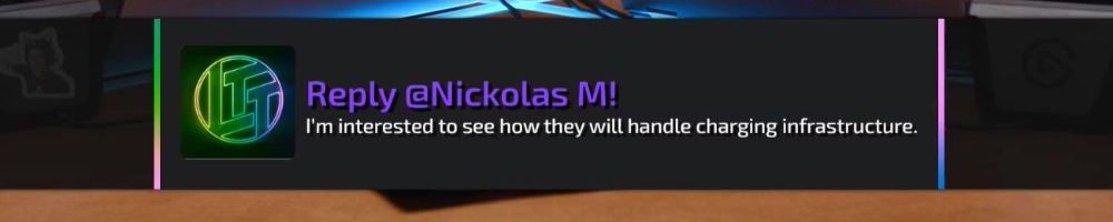 Reply @Nickolas M! I'm interested to see how they will handle charging infrastructure.