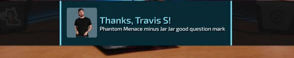 Thanks, Travis S! Phantom Menace minus Jar Jar good question mark