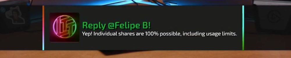 Reply @Felipe B! Yep! Individual shares are 100% possible, including usage limits.