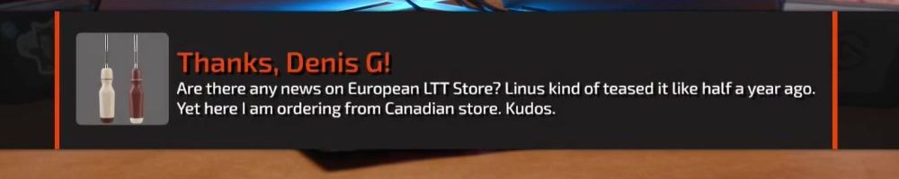 Thanks, Denis G! Are there any news on European LTT Store? Linus kind of teased it like half a year ago. Yet here I am ordering from Canadian store. Kudos.