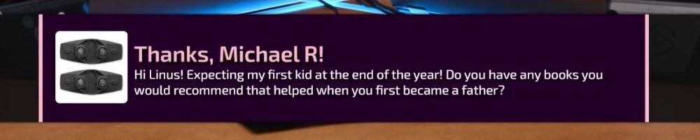 Thanks, Michael R! Hi Linus! Expecting my first kid at the end of the year! Do you have any books you would recommend that helped when you first became a father?
