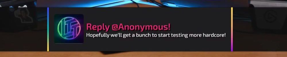 Reply @Anonymous! Hopefully we'll get a bunch to start testing more hardcore!