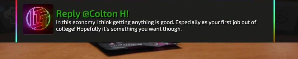 Reply @Colton H! In this economy I think getting anything is good. Especially as your first job out of college! Hopefully it's something you want though.
