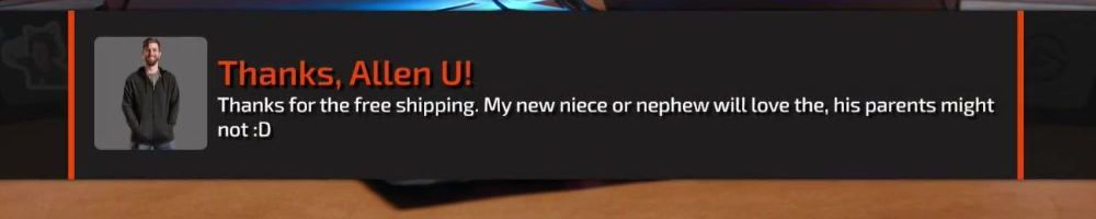 Thanks, Allen U! Thanks for the free shipping. My new niece or nephew will love the, his parents might not :D