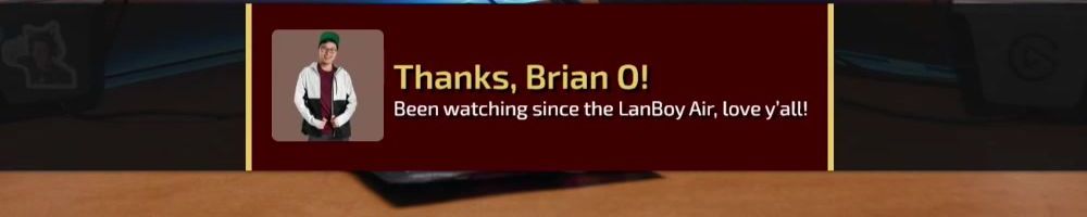 Thanks, Brian O! Been watching since the LanBoy Air, love y'all!