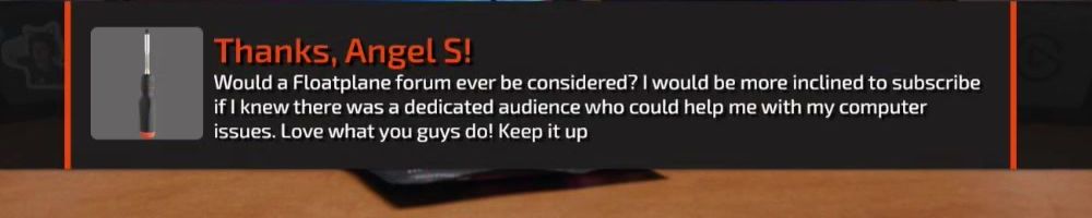 Thanks, Angel S! Would a Floatplane forum ever be considered? I would be more inclined to subscribe if I knew there was a dedicated audience who could help me with my computer issues. Love what you guys do! Keep it up