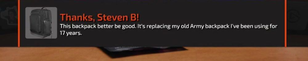 Thanks, Steven B! This backpack better be good. It's replacing my old Army backpack I've been using for 17 years.