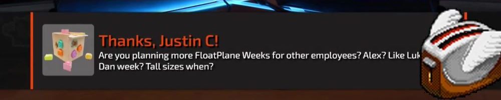 Thanks, Justin C! Are you planning more FloatPlane Weeks for other employees? Alex? Like Luk Dan week? Tall sizes when?