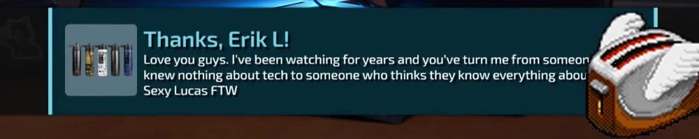 Thanks, Erik L! Love you guys. I've been watching for years and you've turn me from someone knew nothing about tech to someone who thinks they know everything about Sexy Lucas FTW