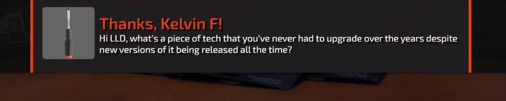 Thanks, Kelvin F! Hi LLD, what's a piece of tech that you've never had to upgrade over the years despite new versions of it being released all the time?