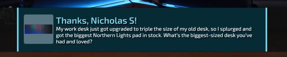 Thanks, Nicholas S! My work desk just got upgraded to triple the size of my old desk, so I splurged and got the biggest Northern Lights pad in stock. What's the biggest-sized desk you've had and loved?