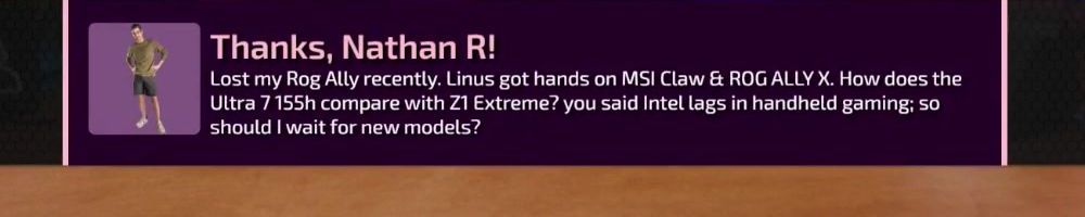 Thanks, Nathan R! Lost my Rog Ally recently. Linus got hands on MSI Claw & ROG ALLY X. How does the Ultra 7 155h compare with Z1 Extreme? you said Intel lags in handheld gaming; so should I wait for new models?