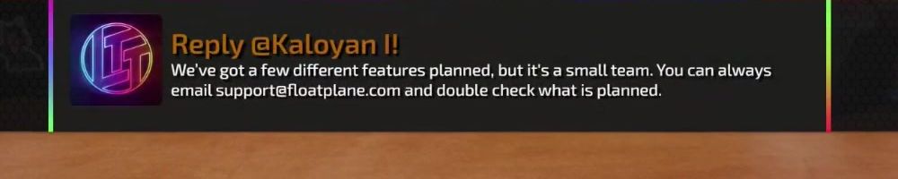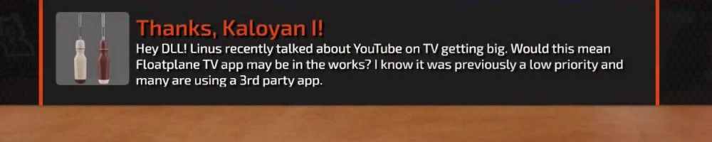 Thanks, Kaloyan I! Hey DLL! Linus recently talked about YouTube on TV getting big. Would this mean Floatplane TV app may be in the works? I know it was previously a low priority and many are using a 3rd party app.