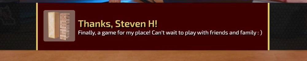 Thanks, Steven H! Finally, a game for my place! Can't wait to play with friends and family : )