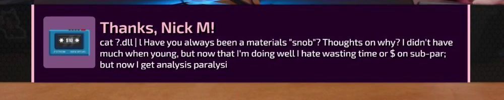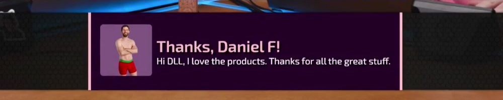 Thanks, Daniel F! Hi DLL, I love the products. Thanks for all the great stuff.