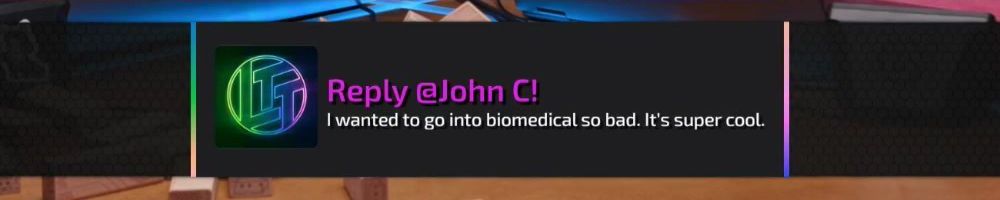 Reply @John C! I wanted to go into biomedical so bad. It's super cool.