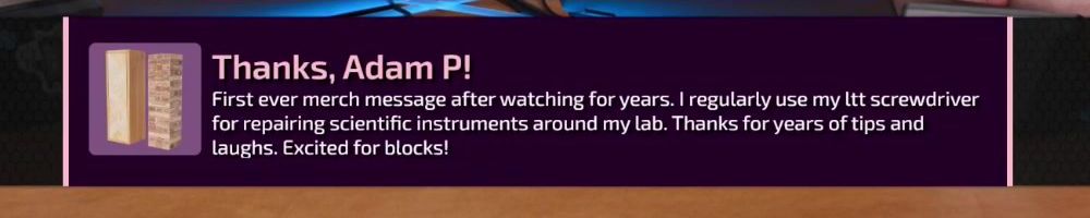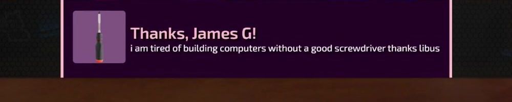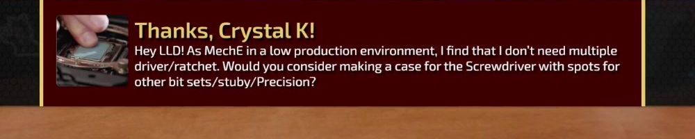 Thanks, Bryan W! Scored a backpack and second screwdriver earlier this week. Extremely excited for them to arrive! Love the content, hello to my coworkers if they're watching.