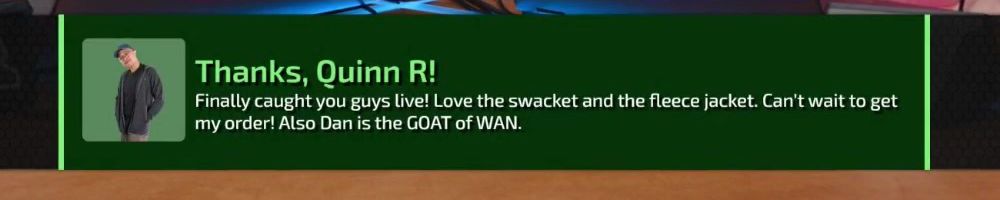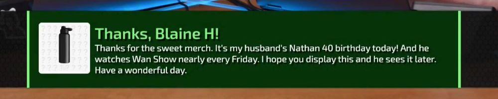 Hint: Use CTRL + F to search messages in this show, or use Whenplane's WAN Show Search tool to search for messages in all shows. Make sure that the "Merch Messages" box is checked when you search for something.