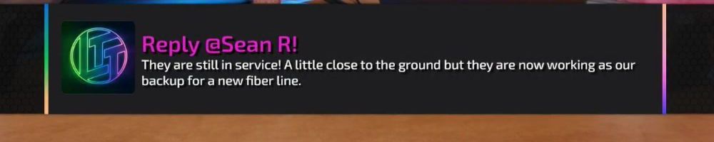Reply @Sean R! They are still in service! A little close to the ground but they are now working as our backup for a new fiber line.