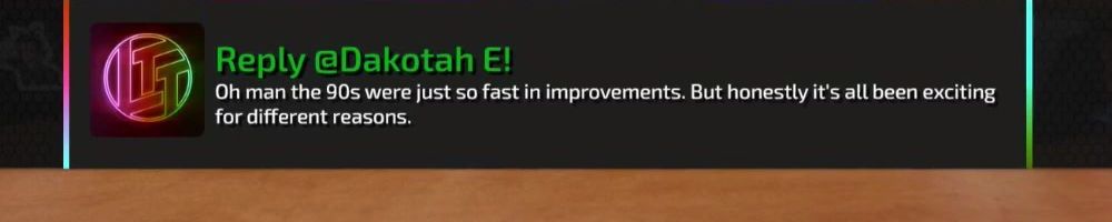 Reply @Dakotah E! Oh man the 90s were just so fast in improvements. But honestly it's all been exciting for different reasons.