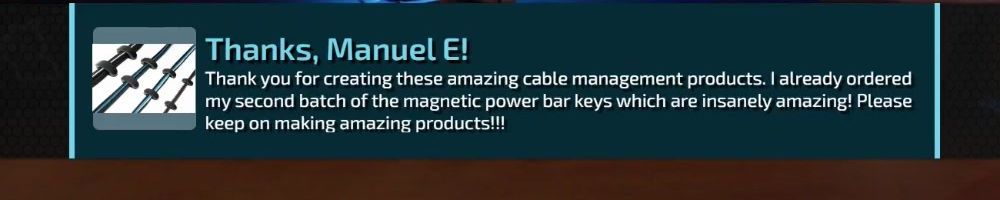 Thanks, Manuel E! Thank you for creating these amazing cable management products. I already ordered my second batch of the magnetic power bar keys which are insanely amazing! Please keep on making amazing products!!!