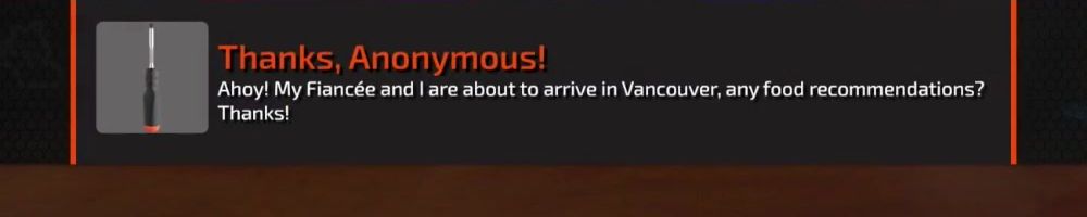 Thanks, Anonymous! Ahoy! My Fiancée and I are about to arrive in Vancouver, any food recommendations? Thanks!