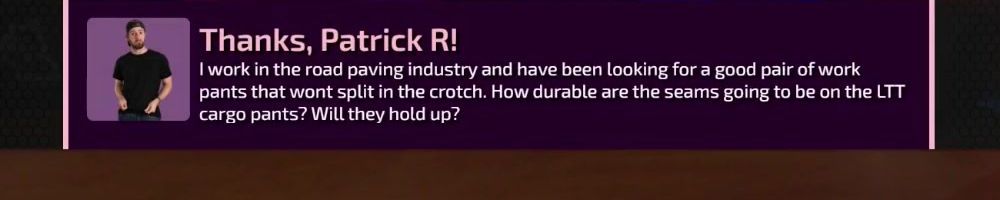 Thanks, Patrick R! I work in the road paving industry and have been looking for a good pair of work pants that wont split in the crotch. How durable are the seams going to be on the LTT cargo pants? Will they hold up?