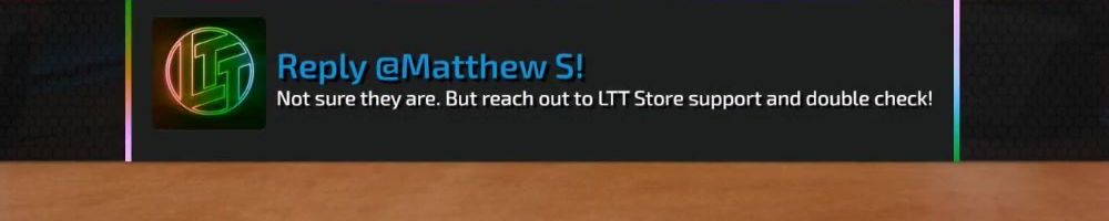 Reply @Matthew S! Not sure they are. But reach out to LTT Store support and double check!