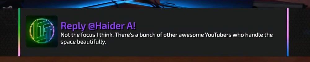 Reply @Haider A! Not the focus | think. There's a bunch of other awesome YouTubers who handle the space beautifully.