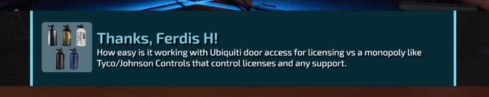 Thanks, Ferdis H! How easy is it working with Ubiquiti door access for licensing vs a monopoly like Tyco/Johnson Controls that control licenses and any support.