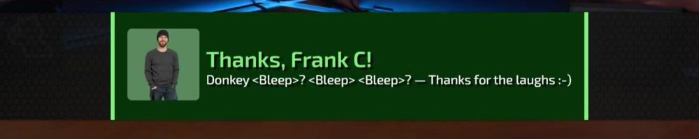 Thanks, Frank C! Donkey <Bleep>? <Bleep> <Bleep>? — Thanks for the laughs :-)