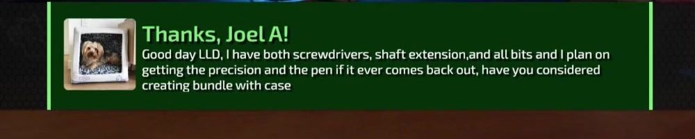 Thanks, Joel A! Good day LLD, I have both screwdrivers, shaft extension, and all bits and I plan on getting the precision and the pen if it ever comes back out, have you considered creating bundle with case