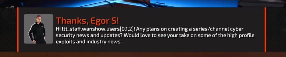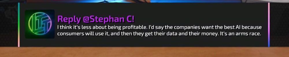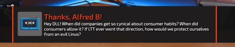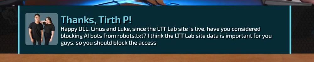 Thanks, Tirth P! Happy DLL. Linus and Luke, since the LTT Lab site is live, have you considered blocking AI bots from robots.txt? I think the LTT Lab site data is important for you guys, so you should block the access