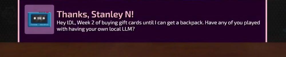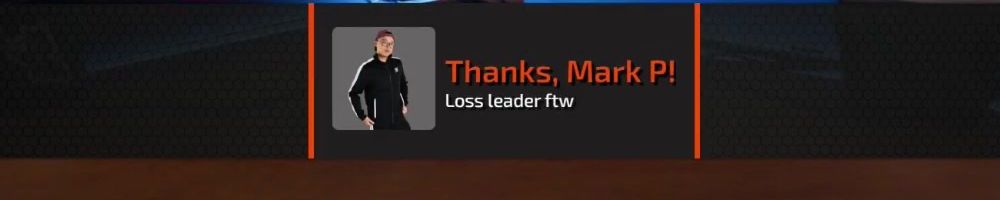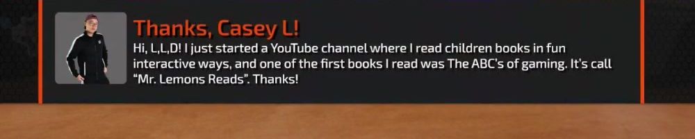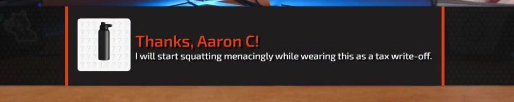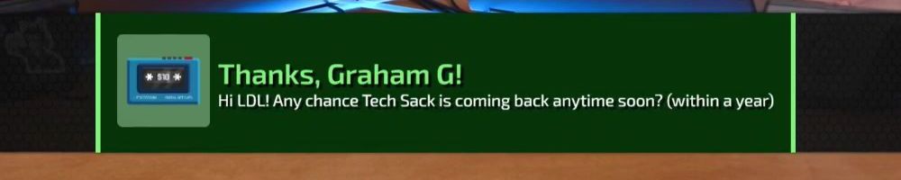 Thanks, Edward H! HI DAN! Luke and Linus: Loot box restaurant when? I'd like one protein with a side green and sparkly drink please.
