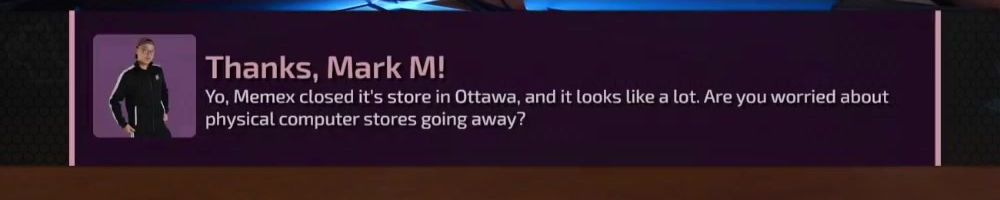 Thanks, Mark M! Yo, Memex closed it's store in Ottawa, and it looks like a lot. Are you worried about physical computer stores going away?