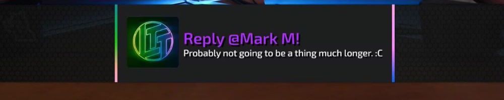 Reply @Mark M! Probably not going to be a thing much longer. :C