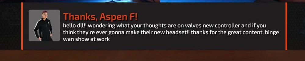 Thanks, Aspen F! hello dll!! wondering what your thoughts are on valves new controller and if you think they're ever gonna make their new headset! thanks for the great content, binge wan show at work
