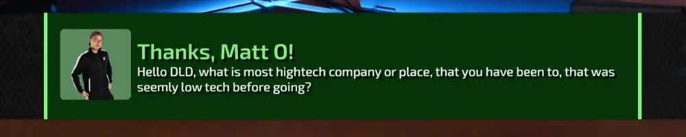 Thanks, Matt O! Hello DLD, what is most hightech company or place, that you have been to, that was seemly low tech before going?