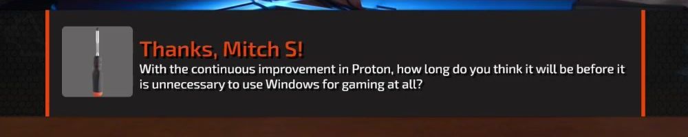 Thanks, Mitch S! With the continuous improvement in Proton, how long do you think it will be before it is unnecessary to use Windows for gaming at all?