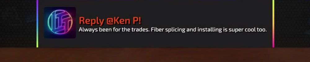 Reply @Ken P! Always been for the trades. Fiber splicing and installing is super cool too.