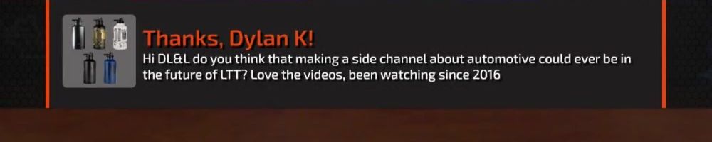 Thanks, Dylan K! Hi DL&L do you think that making a side channel about automotive could ever be in the future of LTT? Love the videos, been watching since 2016