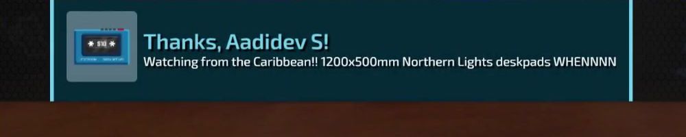 Thanks, Aadidev S! Watching from the Caribbean!! 1200x500mm Northern Lights deskpads WHENNNN