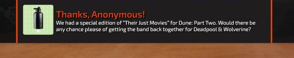 Thanks, Anonymous! We had a special edition of “Their Just Movies" for Dune: Part Two. Would there be any chance please of getting the band back together for Deadpool & Wolverine?