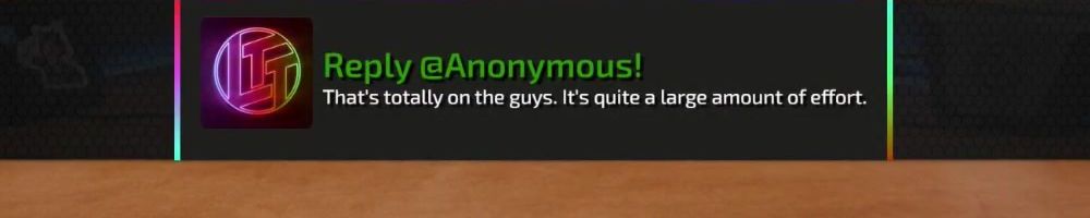 Reply @Anonymous! That's totally on the guys. It's quite a large amount of effort.