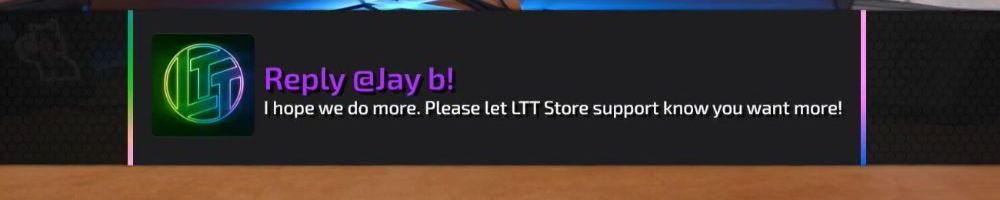 Reply @Jay b! I hope we do more. Please let LTT Store support know you want more!