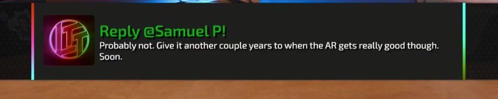 Reply @Samuel P! Probably not. Give it another couple years to when the AR gets really good though. Soon.