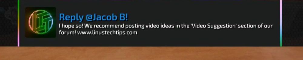 Reply @Jacob B! I hope so! We recommend posting video ideas in the 'Video Suggestion' section of our forum! www.linustechtips.com