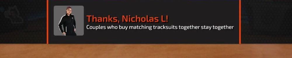 Thanks, Nicholas L! Couples who buy matching tracksuits together stay together